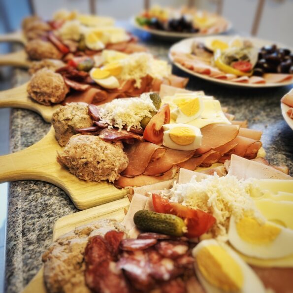 Bei unseren Jausen setzen wir auf Regionalität und Tradition. So stammt das Schweinefleisch aus dem Pöllauer Tal und wird von uns weiter verarbeitet. Unser mildes Geselchtes wird nach altem Rezept eingebeizt und anschließend mit Buchensägespänen langsam und kalt geräuchert.